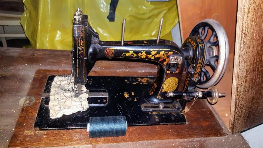 Šicí stroj Singer, nejvyšší nabídce, The new shuttle sewing machine geschutzt, měl snad být vyrobený ještě před rokem 1900, Kralupy. 1.999 Kč.