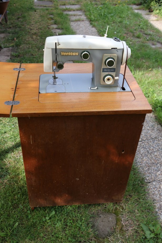 Šlapací šicí stroj Veritas Voll Zick Zack (stroj s klikatým stehem). Kufříkový/ve skříňce. Umí více různých stehů, entl, obšívání knoflíkových dírek, přišívání knoflíků, různé ozdobné stehy. Příslušenství - různé patky, viz fotografie. Nezávislost na elektřině. Návod. Funkční, cena 1.300 Kč.