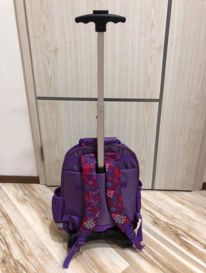 Prodám školní aktovku s výsuvnou rukojetí na kolečkách, možno použít i jako kufr nebo příruční zavazadlo na cesty. Je ve velmi pěkném stavu, používaná krátce.