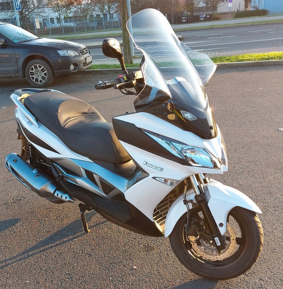 Kawasaki J300 - r. v. 2016, najeto 19.000km, obsah 299ccm, výkon 20,4kW. Velmi pěkný, velké plexi, vše originál, nikdy nebouraný, žádné škrábnutí, nová baterie, koupený v ČR Praha 5. 69.000 Kč.