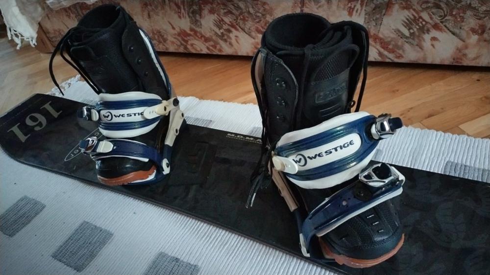Snowboard zn. ROOK, délka 160 cm včetně vázání Westige + boty zn. Lamar Demon vel. 9. Cena celkem 3.500, - Kč. Boty jsou nové, nepoužité.