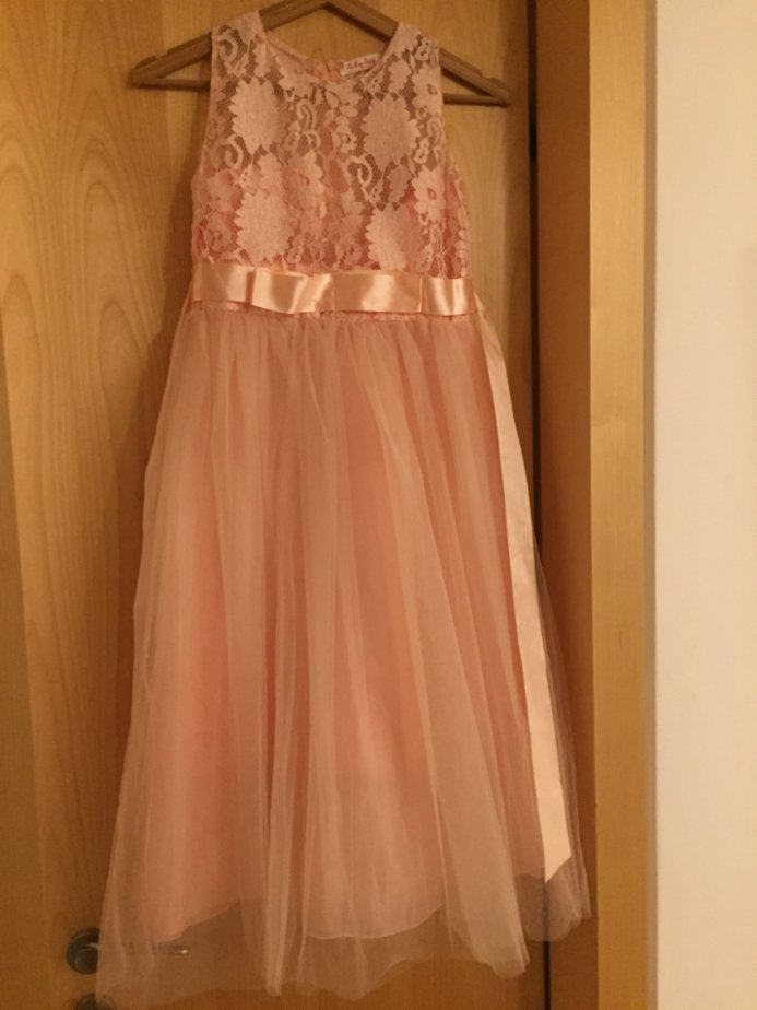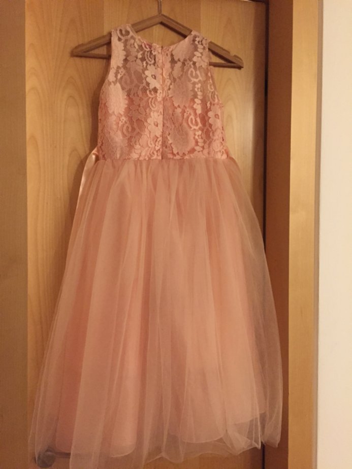 Prodám krásné růžové dívčí / dětské společenské - slavnostní šaty růžové na 11-12 let. Vhodné pro ples, svatbu i pro drůžičku. Cena 550 Kč.