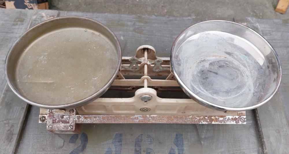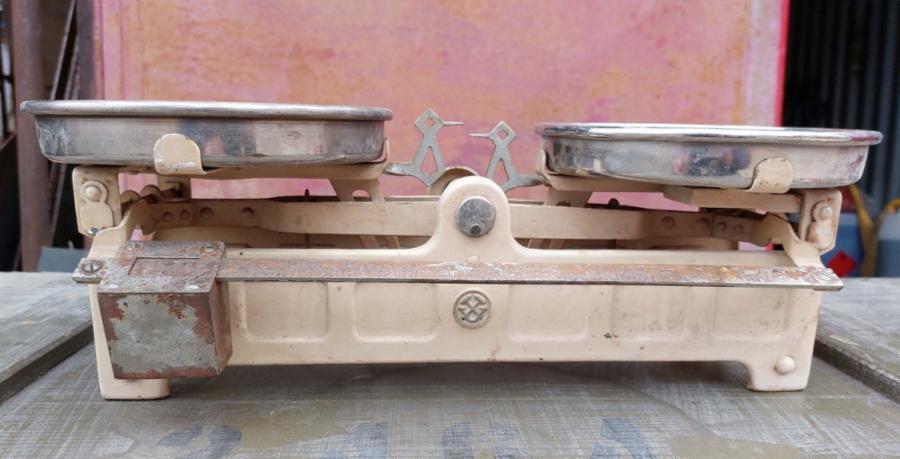 Stará kuchyňská jazýčková váha. Nálezový stav. Cena 999 Kč.