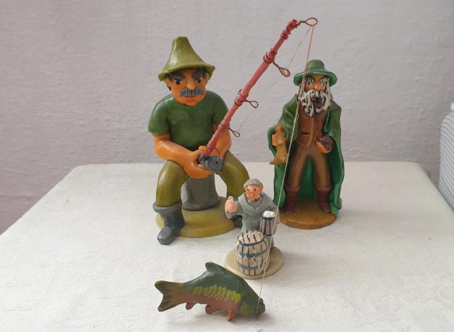 Staré postavičky ručně dělané, koupené někdy kolem roku 1989. Krakonoš, rybář, mnich, kominík, 2 trpaslíci. Předání Mnichovo Hradiště nebo Praha 6 Petřiny. Cena 850 Kč.