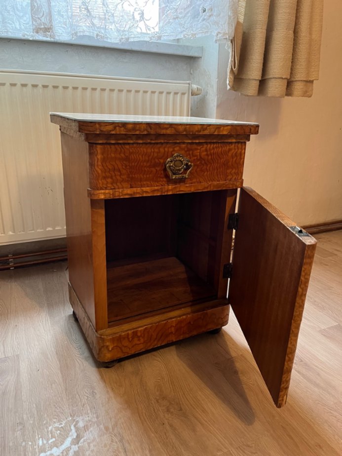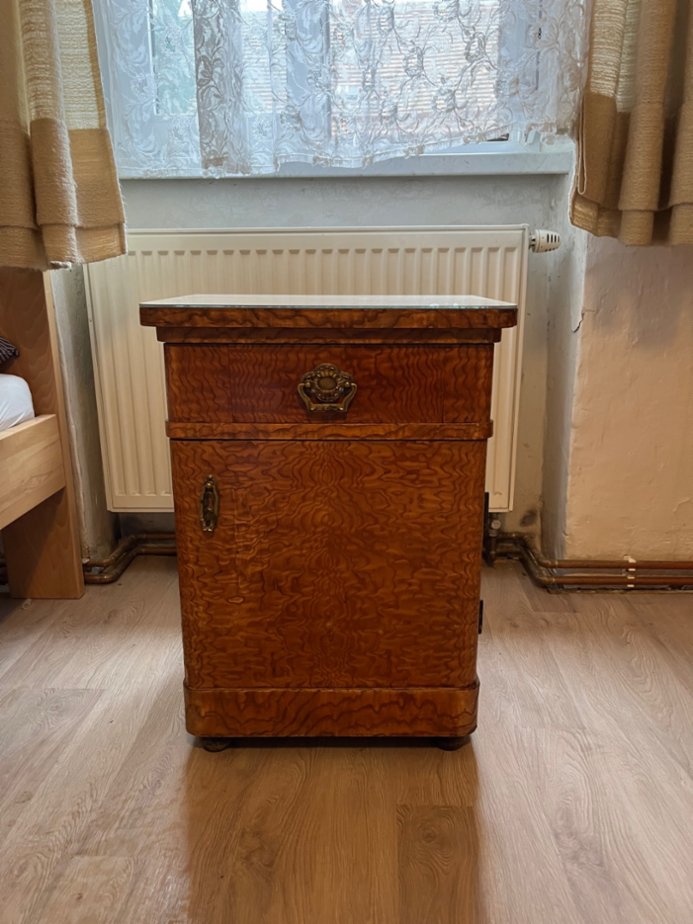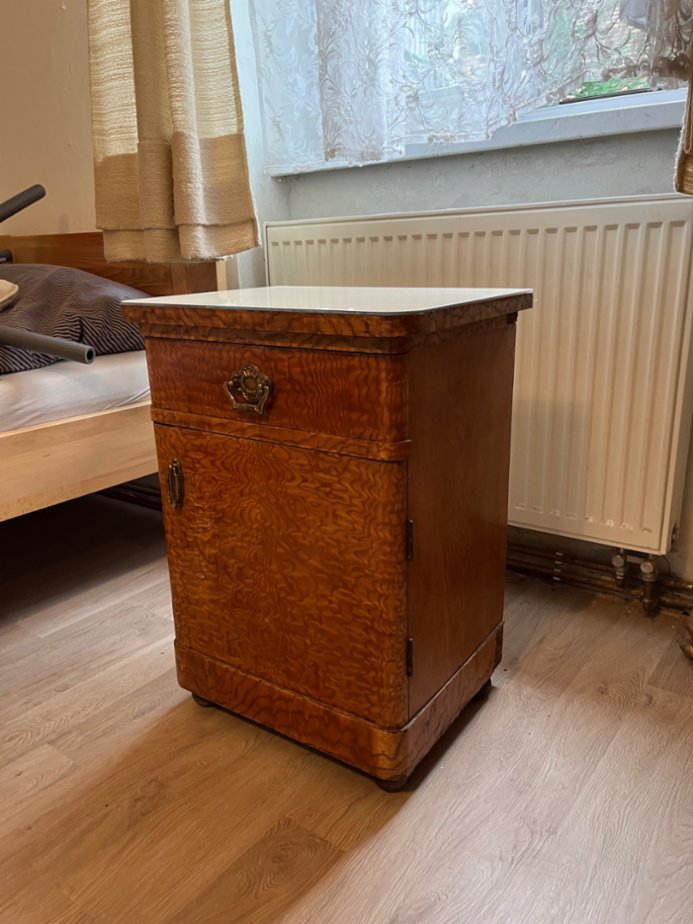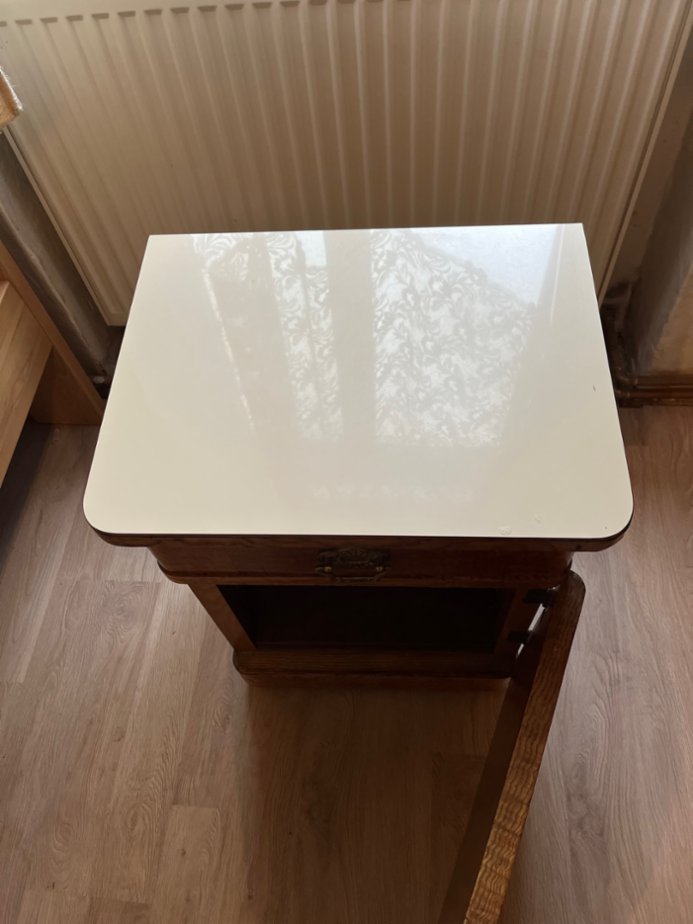 Prodám starožitný noční stolek. Rozměry stolku: výška: 63 cm, šířka: 46 cm, hloubka: 36 cm. Stolek je v zachovalém stavu a funkční. Cena 2.600 Kč.