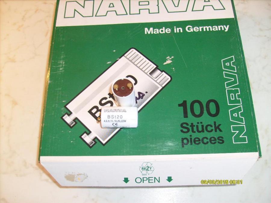 Startéry zářivkové značky Narva, hodnota 4, 6, 8, 15, 18, 20, 22W, nové, nepoužité, celkem 100ks za 450 Kč, nebo jednotlivě po 5 Kč/kus + přepravné.