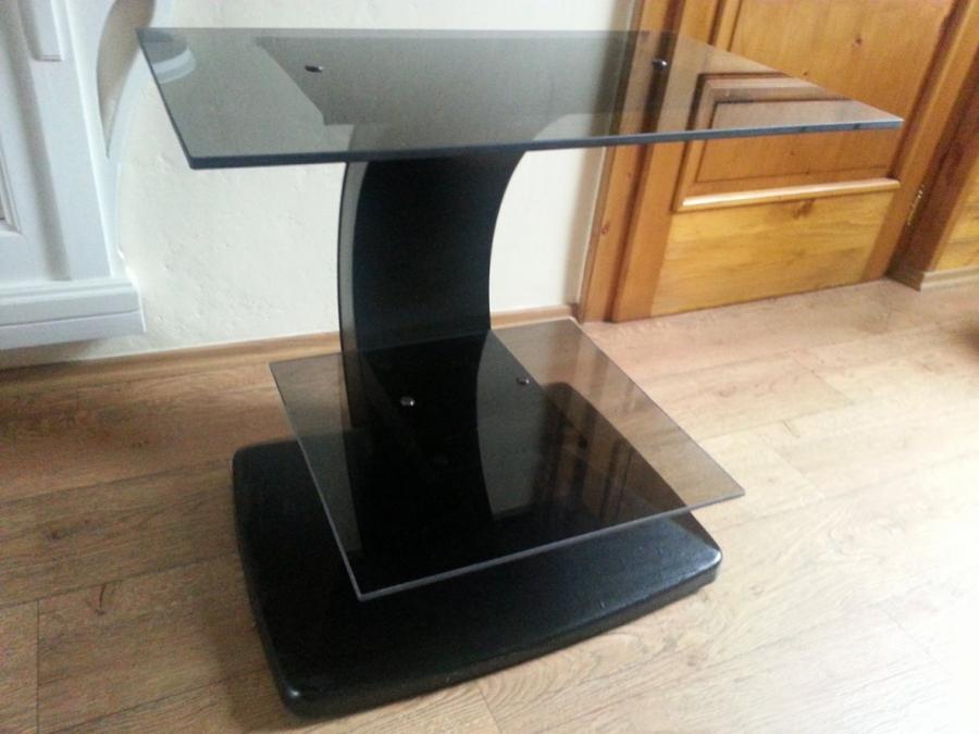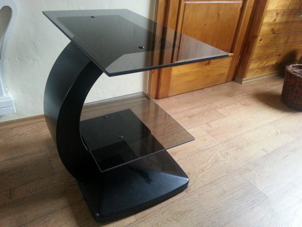 Stojan černé barvy - pod TV, či jinou elektroniku - zn. Benalex, materiál - kov / kouř. sklo, rozměry: v. 57, š. 60, hl. 50 cm. Perf. stav i vzhled. Cena - 1.500 Kč.