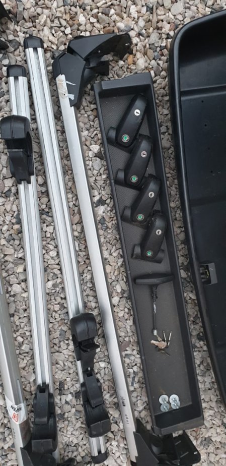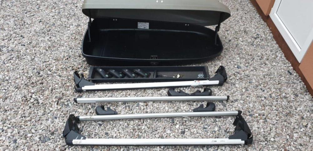 Prodám střešní box, kompletní se střešními nosiči, originál Škoda. Málo používaný, velmi pěkný stav bez poškození viz foto. Cena 4.000 Kč, dohoda možná.