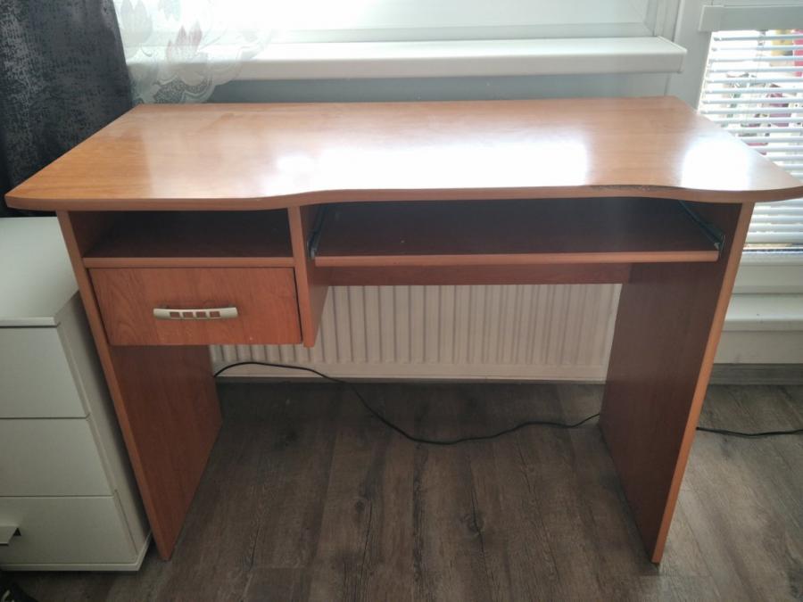 Počítačový stůl. Rozměry VxŠxHx 74 x 100 x 49. Přední lišta poničená.