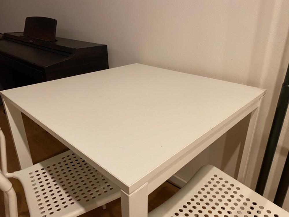 Stůl 75x75, mírně použitý , 2x bílá židle. 700 Kč.