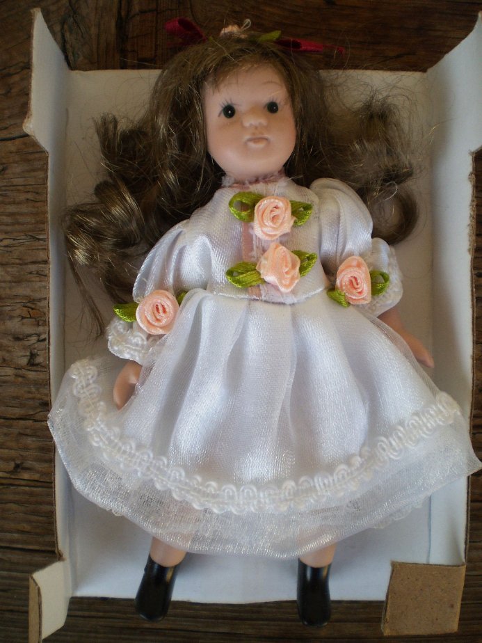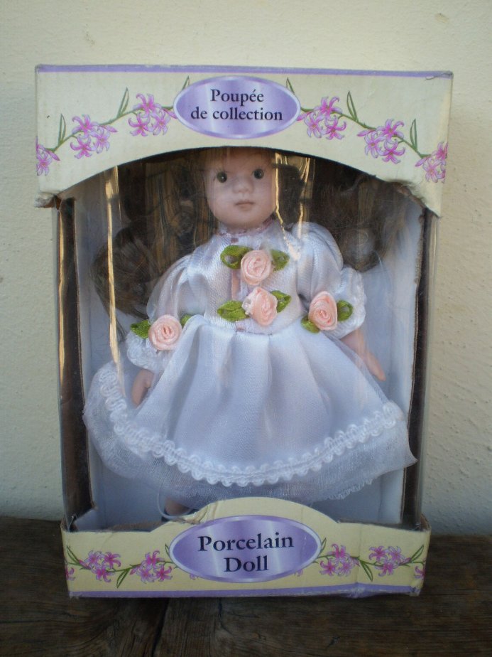 Nová, nepoužitá svatební dekorační panenka Poupée de collection, porcelán, v bílých šatičkách s růžičkami, stojící - lze posadit, výška 15cm. Cena 700 Kč (dohoda, mohu poslat na dobírku).