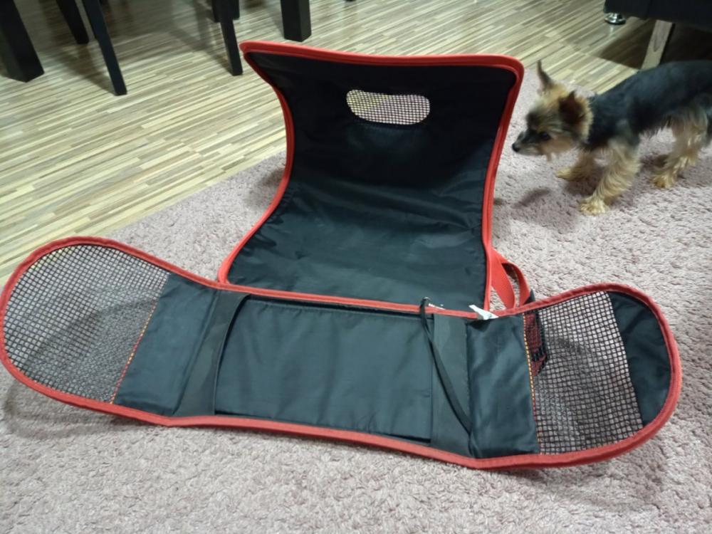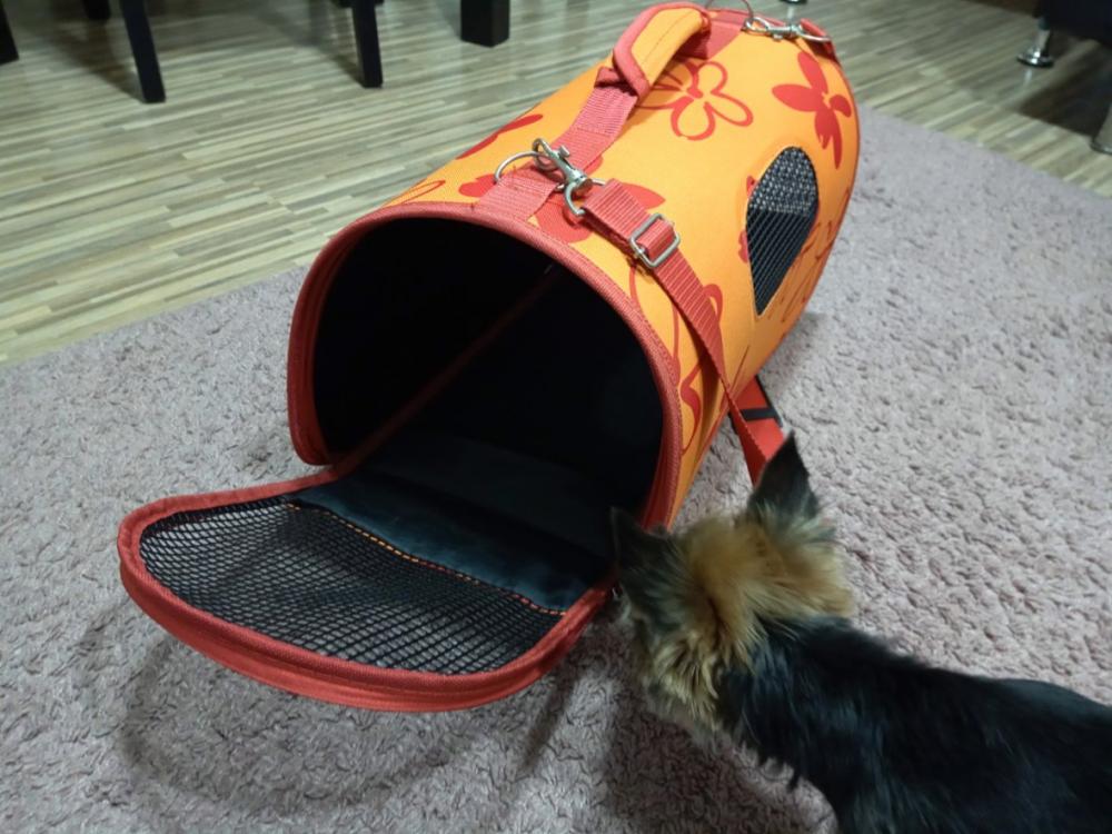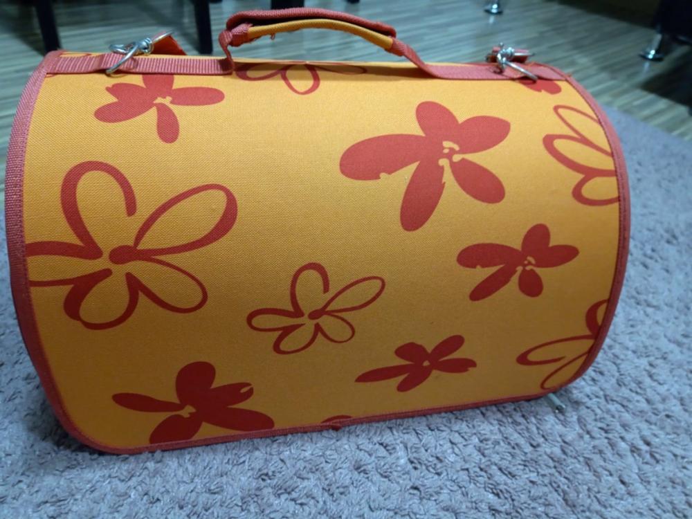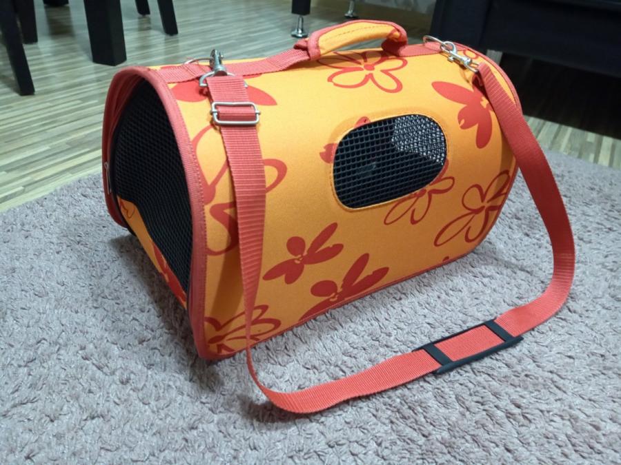 Prodám tašku pro malého mazlíka. Pevná, rozkládací, snadno udržovatelná, použita pouze třikrát. Popruh přes rameno. Rozměry: 40x25x25 cm. Cena 600 Kč.