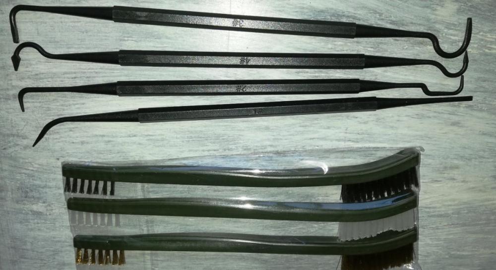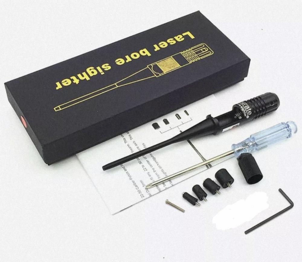 Tři druhy kartáčků, ocel, mosaz a plast a 4 druhy háčků z tvrdého plastu (nepoškrábe zbraň) Ideální na čištění zbraní. Laserový set pro nastřelování (kolimační laser univerzální) + 550kč. Bateriemi napájený laser pro rychlé seřízení optiky Vaší zbraně. Sada obsahuje laser, 5x trny pro ráže .177 - .50. Velmi vhodné pro seřízení puškohledu, kolimátoru, orientační nastřelení, nebo ověření nastřelení po přepravě. Lze použít i na vzduchovky 4,5mm, baterie 3xLR44, není součástí.