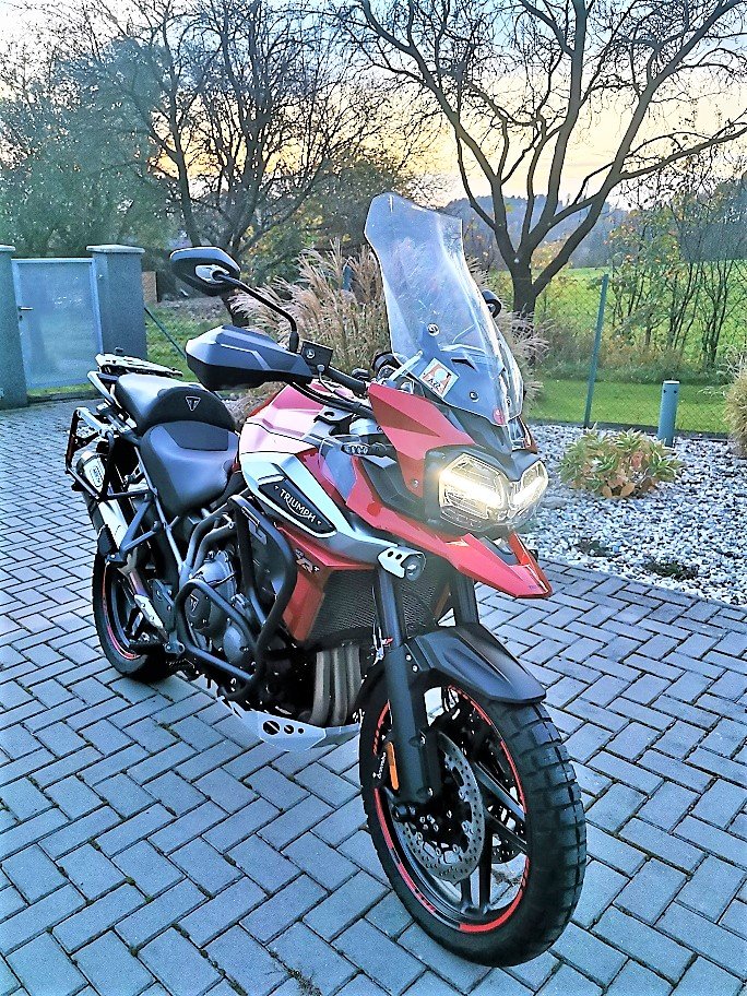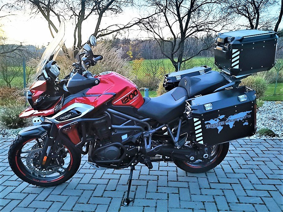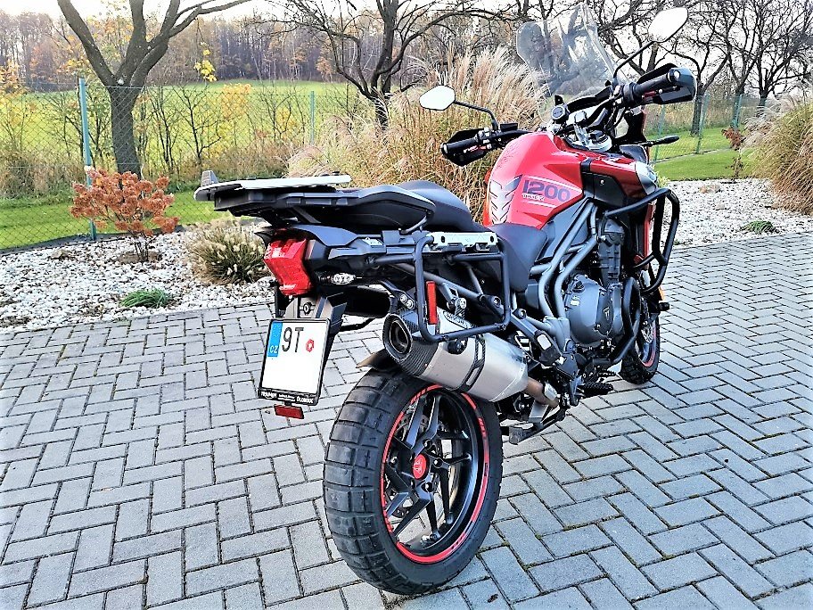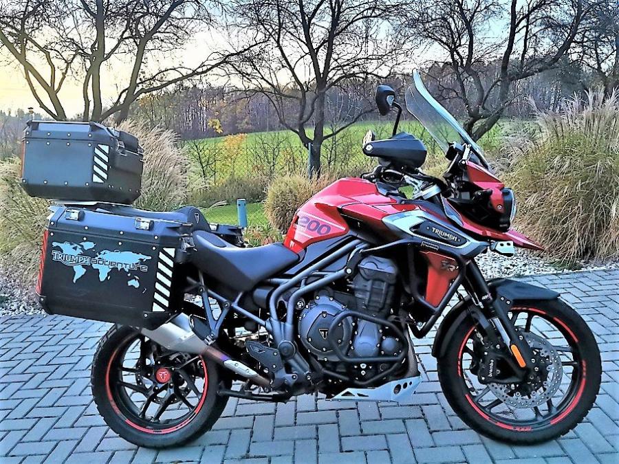 Triumph Tiger 1200 XRT 141PS, r. v. 8/2018, 38.950km, STK 8/2026, top stav i výbava, koup. nový v ČR, serv. kn., 2 klíče, čerstvě po servisu, pneu Pirelli Rally STR, bez investic. Výbava: ABS, tempomat, TC, 5 jízd. režimů, el. nast. podv., full LED, Quickshifter, vyhř. rukojeti + sed., asistent rozj., bezkl. start., el. nast. štít, příd. LED světla, 2x zás. 12V, hlídání tlaku v pneu, navig. Tom Tom Rider 550, titan. výfuk Arrow, padací rámy, Al kryt motoru, kryt chladiče, 3x Al kufry Triumph.