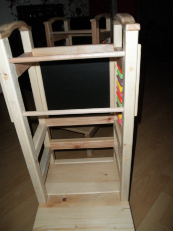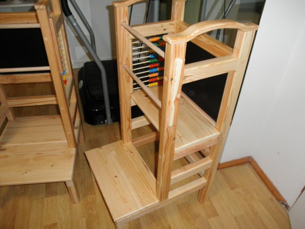 Ručně dělaná nová učící věž z masivu, velice stabilní a pěkná. Ošetřeno lakem vhodným pro děti, bezpečnostní pojistka, několik poloh výšky sedátka/stupátka, dá se využít jako židlička ke stolu, počítadlo. Oboustranná tabule na kterou se dá psát křídou. Jedna magnetická. Při rychlém jednání sleva. 2.500 Kč.