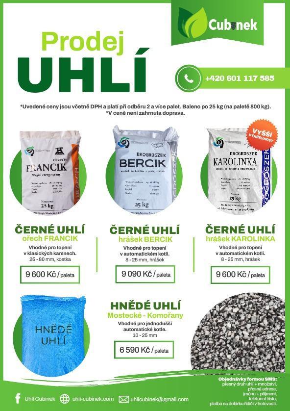 Nabízíme tříděné pytlované černé a hnědé uhlí jedno z nejlepších na trhu a balené na nové balící lince v Top obalech ‼️‼️Černé se vyznačuje vysokou výhřevností ????????zrnitosti a malým obsahem síry ‼️‼️navíc velmi dobře hoří a při dobrém spalování veškeré uhlí shoří ????????na jemný popel a jen minimálně zanáší kotel ‼️‼️Máme teď navíc v nabídce nový typ černého uhlí ekohrášek premium Karolinka která se vyznačuje mimořádnou výhřevnosti až 28 MJ/kg????????, zrnitostí a úplně minimální obsahem síry‼️‼️Hnědé uhlí je Mostecké-Komořany pro jednodušší automatické kotle z frakcí 10-25mm‼️‼️A ptáte se proč zrovna pytlované uhlí??? Vyšší kvalita, přesná váha ‼️odložená lopata a kyblík ‼️A co je hlavně důležité žádný nepořádek a odpad‼️ tím pádem za celou topnou sezónu utratíte míň peněz než u volně loženého‼️Navíc váha pytle je jenom 25 kg tak že i starší člověk nebude mít problém z manipulací‼️‼️Vezme jeden pytel přenese ke kotly a pohodlně muže dosypávat‼️‼️Informace jak objednat, ceny ,číslo, naše stránky ,typy uhlí z popisem jsou na fotkách. Doprava Olomoucký ,Zlínský, Moravskoslezský kraj. Sklady máme v Ostravě a Buchlovicích‼️‼️‼️