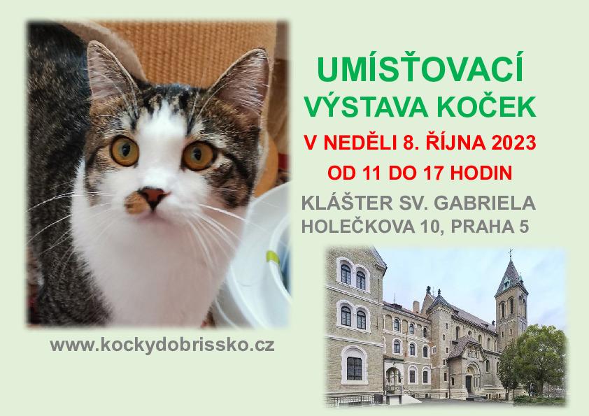 Umísťovací výstava koček se koná v neděli 8. října od 11 do 17 hodin v prostorách bývalého kláštera sv. Gabriel Na nový domov se zde budou těšit naše koťata a kočičky, které budou vyhlížet hodné lidi, kteří si je adoptují. Přímo z výstavy si tedy návštěvníci budou moci odnést kočičku a poskytnout jí svůj domov. Kočičku předáváme vždy po podpisu adopční smlouvy a uhrazení adopčního poplatku. Vstupné dobrovolné.