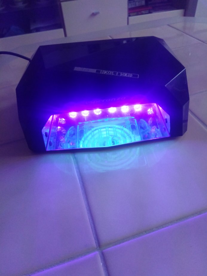 Lampa je málo používaná. Jako bonus k ní přidávám čistič nehtů a 2 laky, podkladový a vrchní lak a ubrousky.