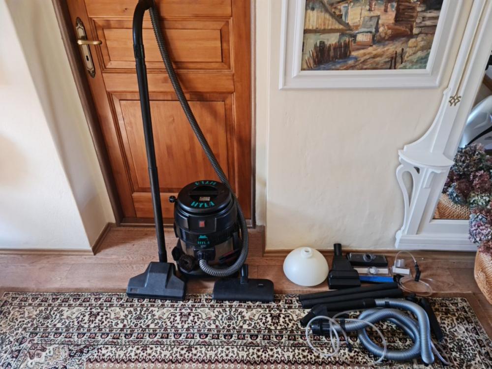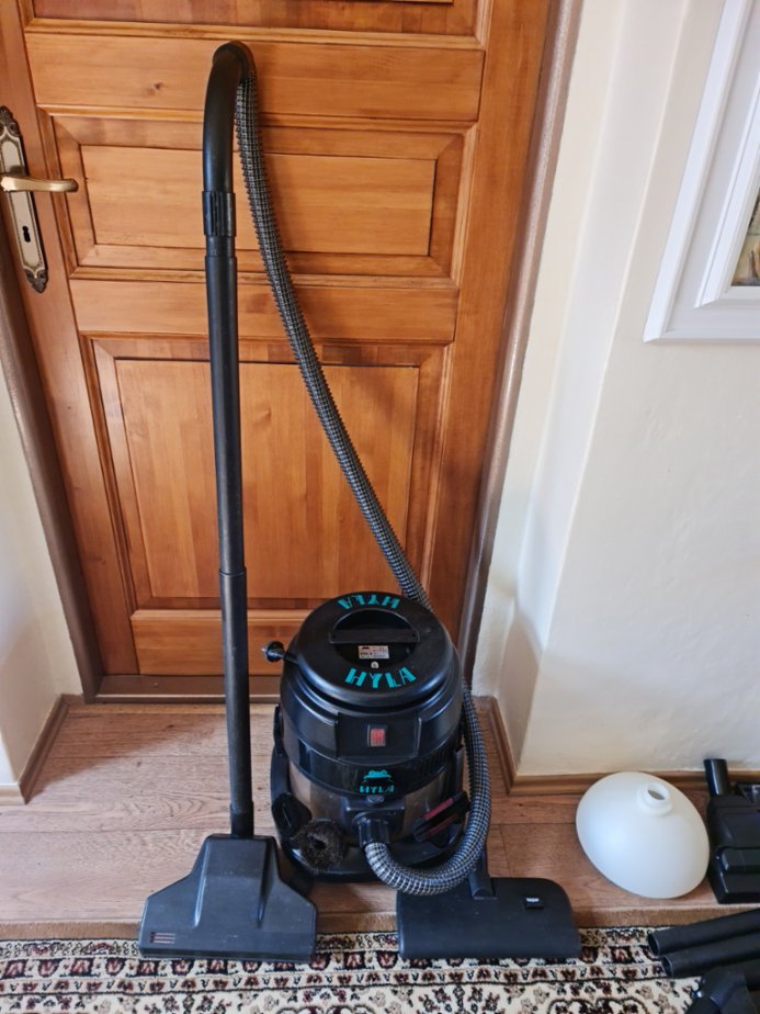 Prodám starší model vysavače Hyla (vzduch a prostor čistící systém - na zákl. technologie voda/rotační separátor) vč. kompletního příslušenství. Příkon - 850W. Funkce - čištění vzduchu od prachu a zápachu, vysávání nasucho, hloubk. čištění koberců a matrací pomocí turbo-rotačního kartáče, vysávání namokro, vytírání a mytí tvrdých podlah, praní koberců a čalounění. Cena - 10.000 Kč.