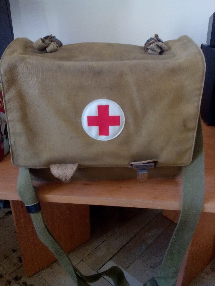 Vojenská brašna první pomoci r. 1967, vhodná pro sběratele. 999 Kč.