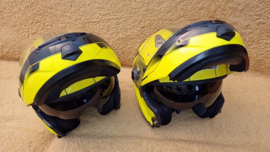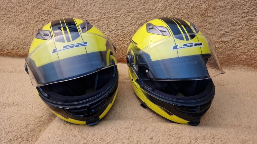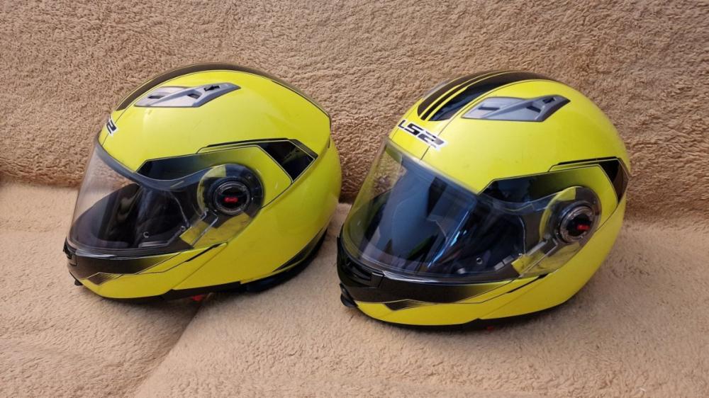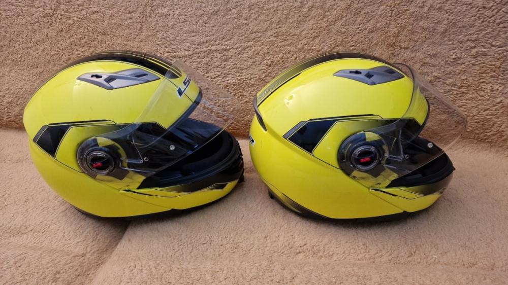 Prodám použité výklopné helmy LS2, 2 ks, velikost S a L, v dobrém stavu, běžné známky opotřebení. Prodávám z důvodu nevyužití, třeba někomu poslouží. Preferuji osobní odběr v Lipníku nad Bečvou - možnost vyzkoušení. Cena za jednu helmu 900Kč, při odběru obou helem cena 1.600Kč celkem. Inzerát je platný do smazání.