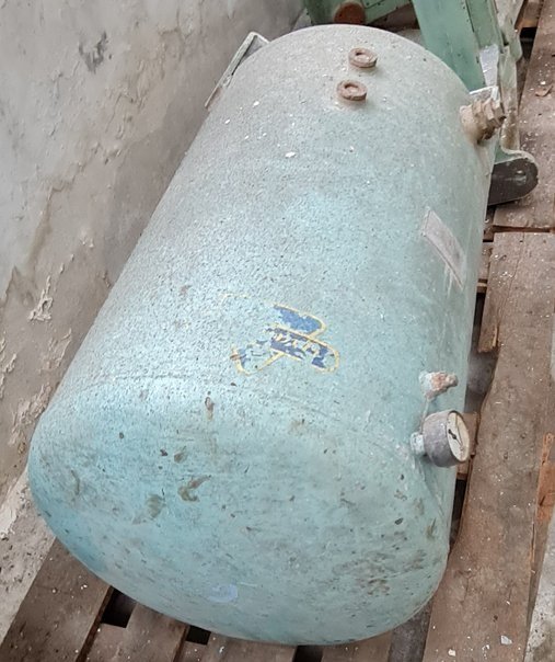 Vzdušník stojatý . Katalogové číslo: 15548 . Typ, parametry: 200 l . Výrobce: Renokov. Rok výroby 1970. Objem 200l, prac. tlak 4kP/cm2, cena 2.000 Kč.