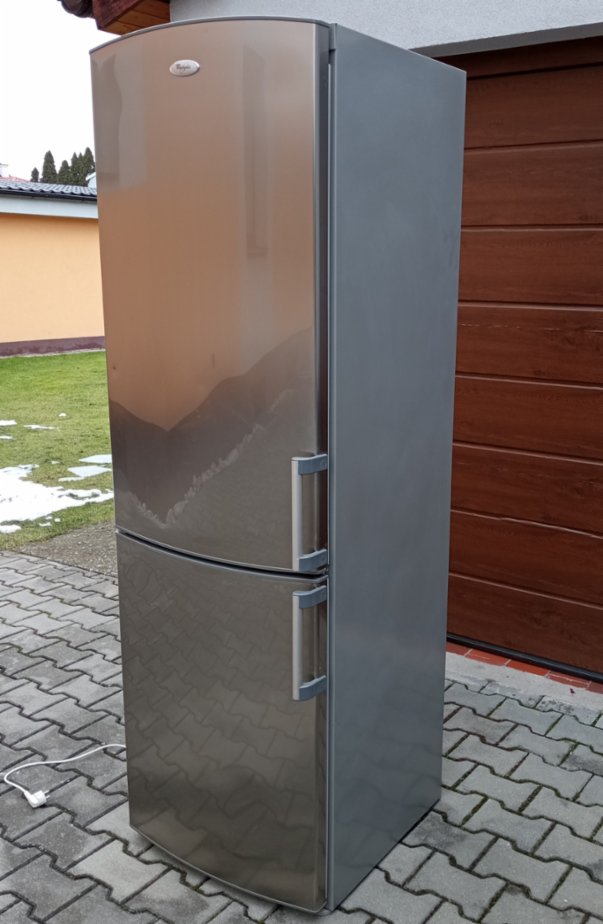Nabízím velmi zachovalou, málo používanou, volně stojící, dvoudveřovou, kombinovanou chladničku Whirlpool, s elektr. ovládaným ventilátorem. Klimatická třída N–T. Rozměry v=189,5 cm; š=59,5 cm; h=64 cm; Objem 341 l; Automatické odmrazování. Jeden kompresor a jeden termostat. 4 ks polic chladničky z tvrzeného skla + zásuvka na zeleninu + 3 přihrádky ve dveřích. 3ks zásuvek v mrazáku. Lednice má úpravou proti otiskům prstů, je prostorná a tichá s nízkou spotřebou energie. Preferuji vlastní odvoz.