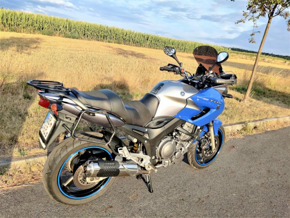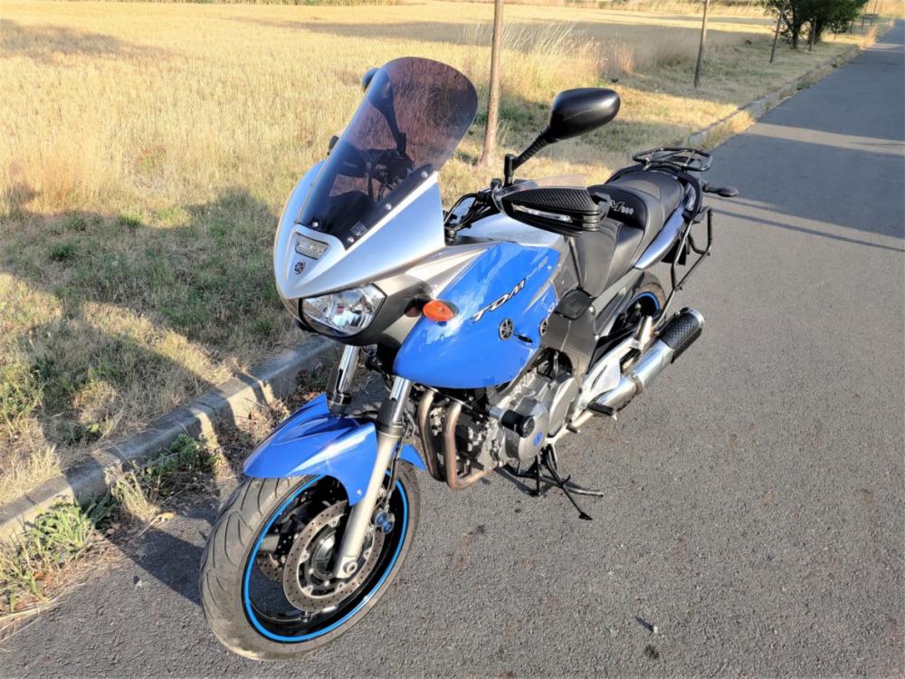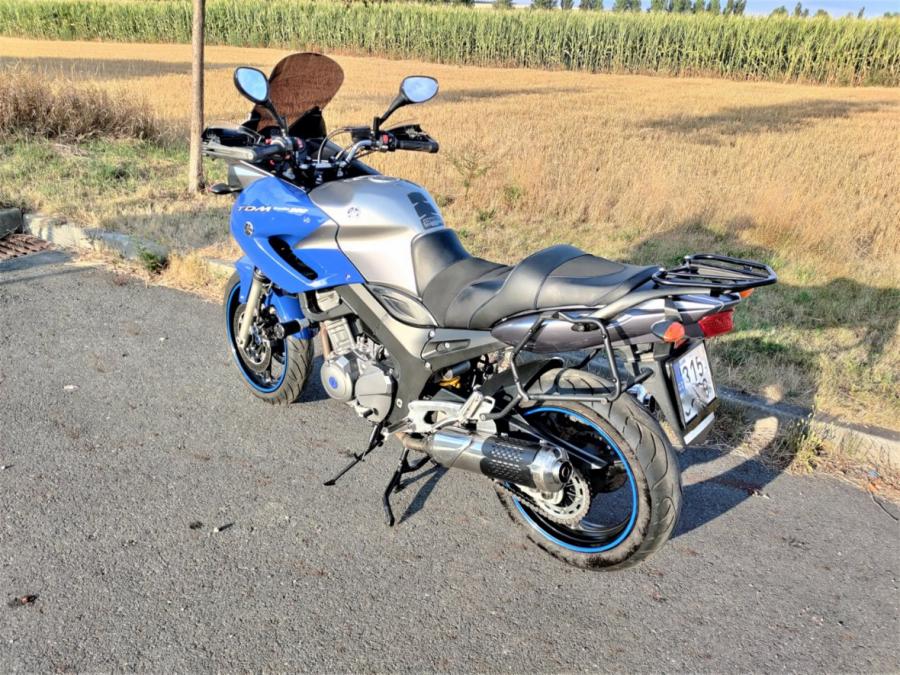 Yamaha TDM 900 s ABS, r.v.2005, 63,4kW, top stav, modro-stříbrná met. 56 000 km. Ukazatel zařaz. rychlosti, sedlo na zakázku s gelovou vložkou, centrální i boční stojan, držáky bočních kufrů, zásuvka 12V, vyšší plexi (+ originál), padáky, kryty rukou s blinkry. Řetězová sada 70%, přední pneu 80%, zadní pneu nová 100%, nově vyměněný olej. Přední rozeta je o jeden zub menší pro lepší akceleraci (+ originál). České doklady, pravidelný servis - servisní kniha. Spolehlivá, rovnou jezdit. 79.000 Kč.