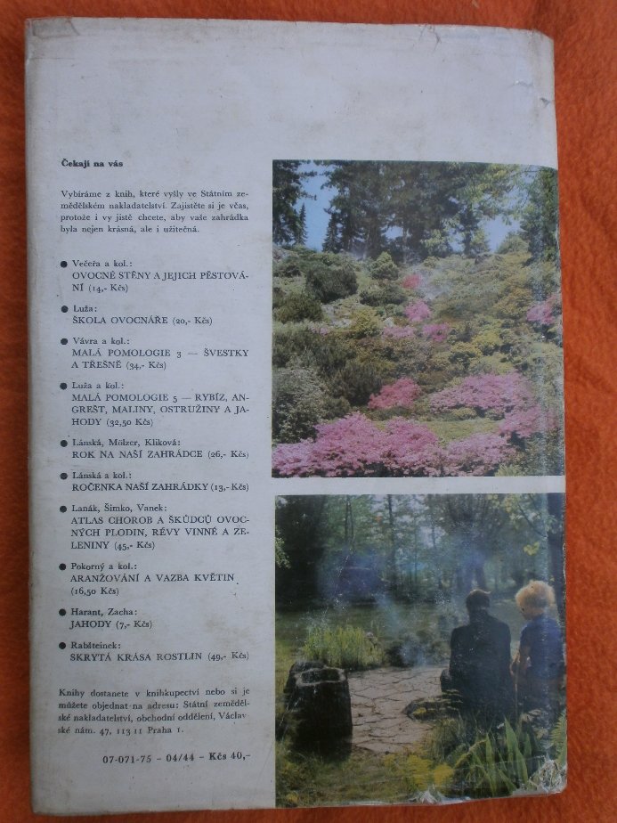 Zahrada a její uspořádání, autor: Jiří Mareček a kol. Praha, Státní zemědělské nakladatelství 1975, 206 stran, barevné fotografie na obálce, v textu 98 černobílých fotografií + 120 pérovek. Vázaná kniha, málo používaná, nepoškozená (pouze trochu v krajích poškozen přebal, ale je podlepen a zpevněn). Výška 24,5 cm, šířka 17 cm. V Praze v dostahu MHD dovezu, cena 85 Kč.
