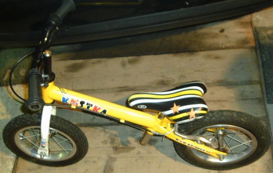 Značkové odrážedlo Kostka run (kolo) - vyrobeno v ČR. Je určeno pro nejmenší děti od 2 - 3 let, k naučení držení rovnováhy před usednutím na jízdní kolo. Odrážedlo je vybaveno kvalitní zadní brzdou Longus, nafukovacími koly velikosti 12", barva rámu žlutá. Nastavitelné sedlo i výška řidítek. Cena 1.000 Kč. Ne SMS a e-mail.
